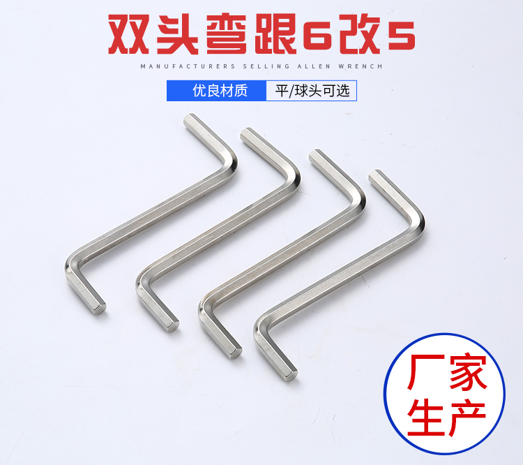 雙頭彎內六角扳手在工業生產作業中,因為管材件都是直圓管材,但是工業生產需要的配件大多數不是直管,需要用到彎管機進行彎折處理,雙頭彎以適配各種各樣的工業生產需求。